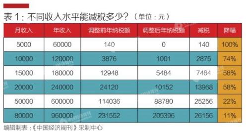 若只考虑综合所得基本减除费用标准提高、税率结构优化调整两个因素,记者粗略测算发现,不同收入水平的群体税负变化不同。